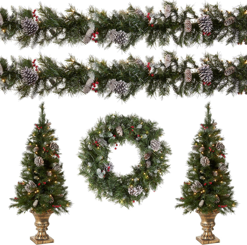 - Coordinated 5-Piece Set: Includes a wreath, two entrance trees, and garlands for a complete holiday look.